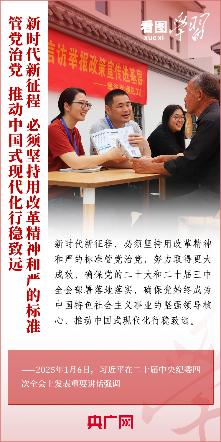 1月6日,习近平总书记在二十届中央纪委四次全会上发表重要讲话,充分肯定过去一年全面从严治党取得的新进展、新成效,深刻分析当前反腐败斗争形势,对坚决打好反腐败斗争攻坚战、持久战、总体战提出明确要求。总书记强调,新时代新征程,必须坚持用改革精神和严的标准管党治党,努力取得更大成效,确保党的二十大和二十届三中全会部署落地落实,确保党始终成为中国特色社会主义事业的坚强领导核心,推动中国式现代化行稳致远。一起来学习!