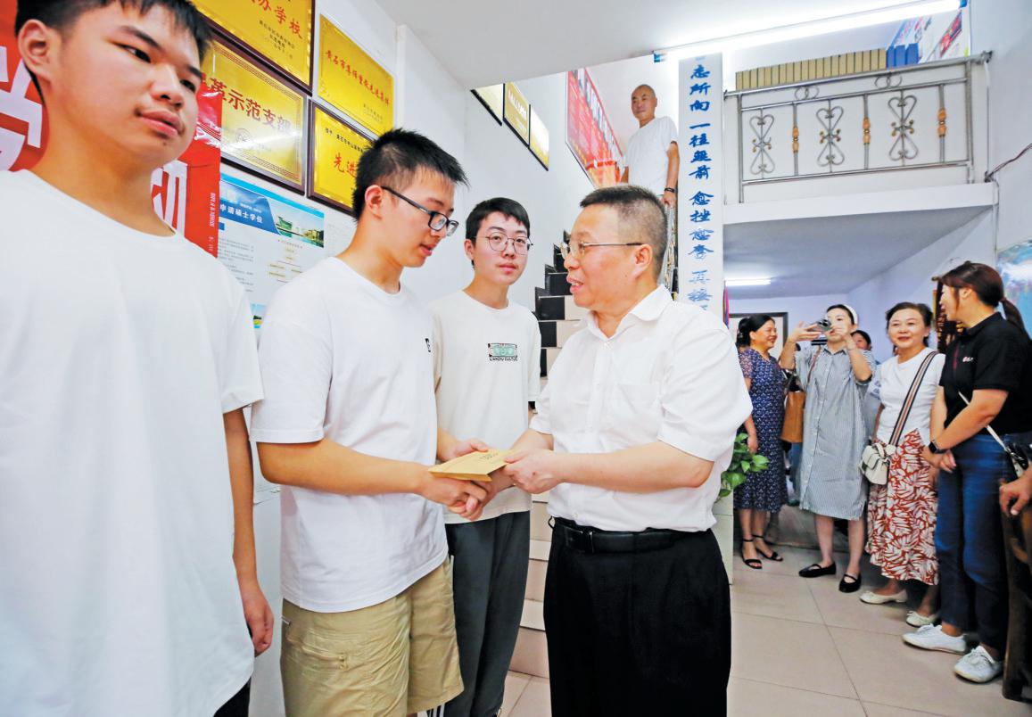 8月14日,民革黄石市委员会第24次“博爱·牵手”同心助学活动举行,8名即将踏入高校的准大学生,收到了叶丰收的爱心助学款。24年来,叶丰收带领中山高教持续助力寒门学子,为他们的人生道路加油。